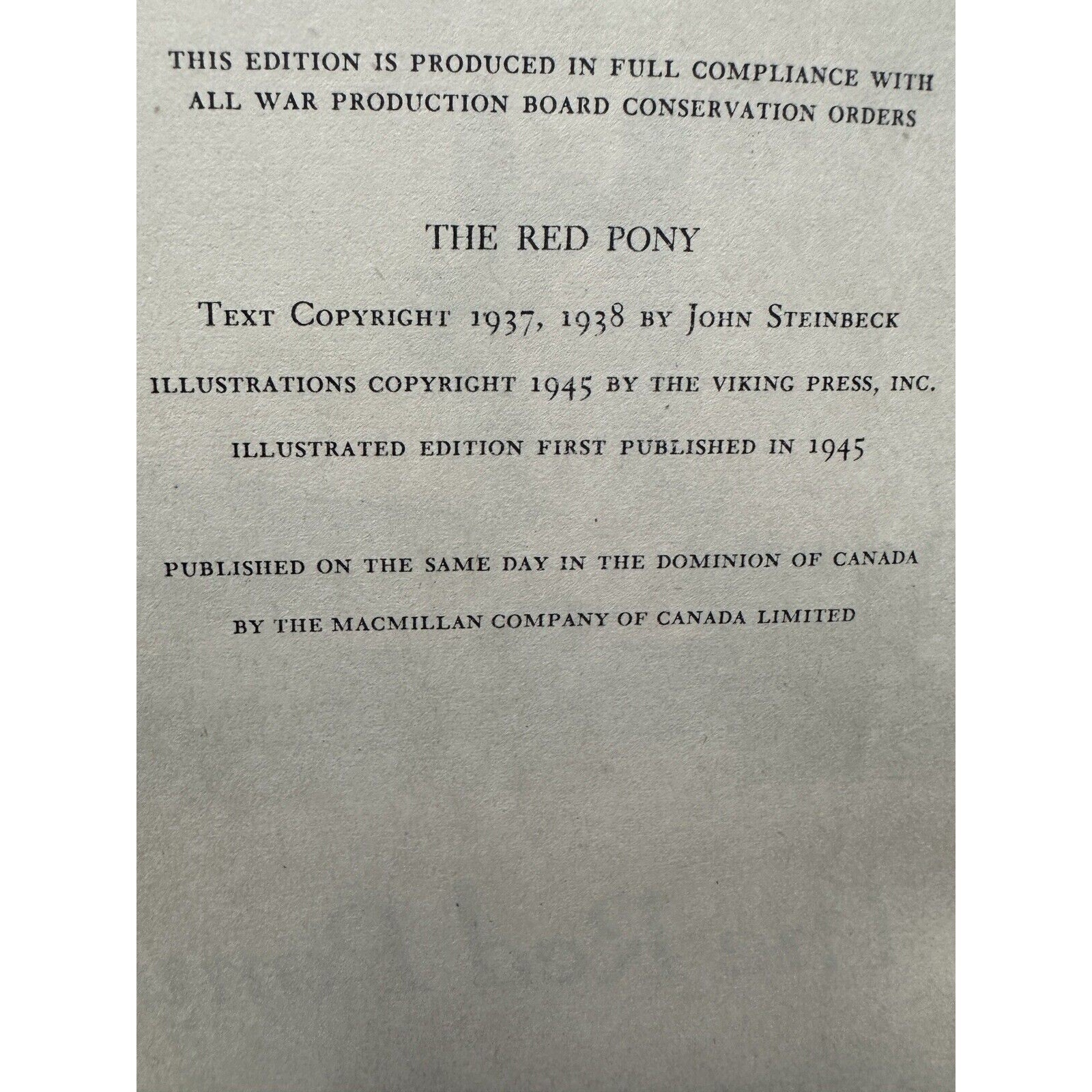 The Red Pony Hardcover Book by John Steinbeck The Viking Press 1945