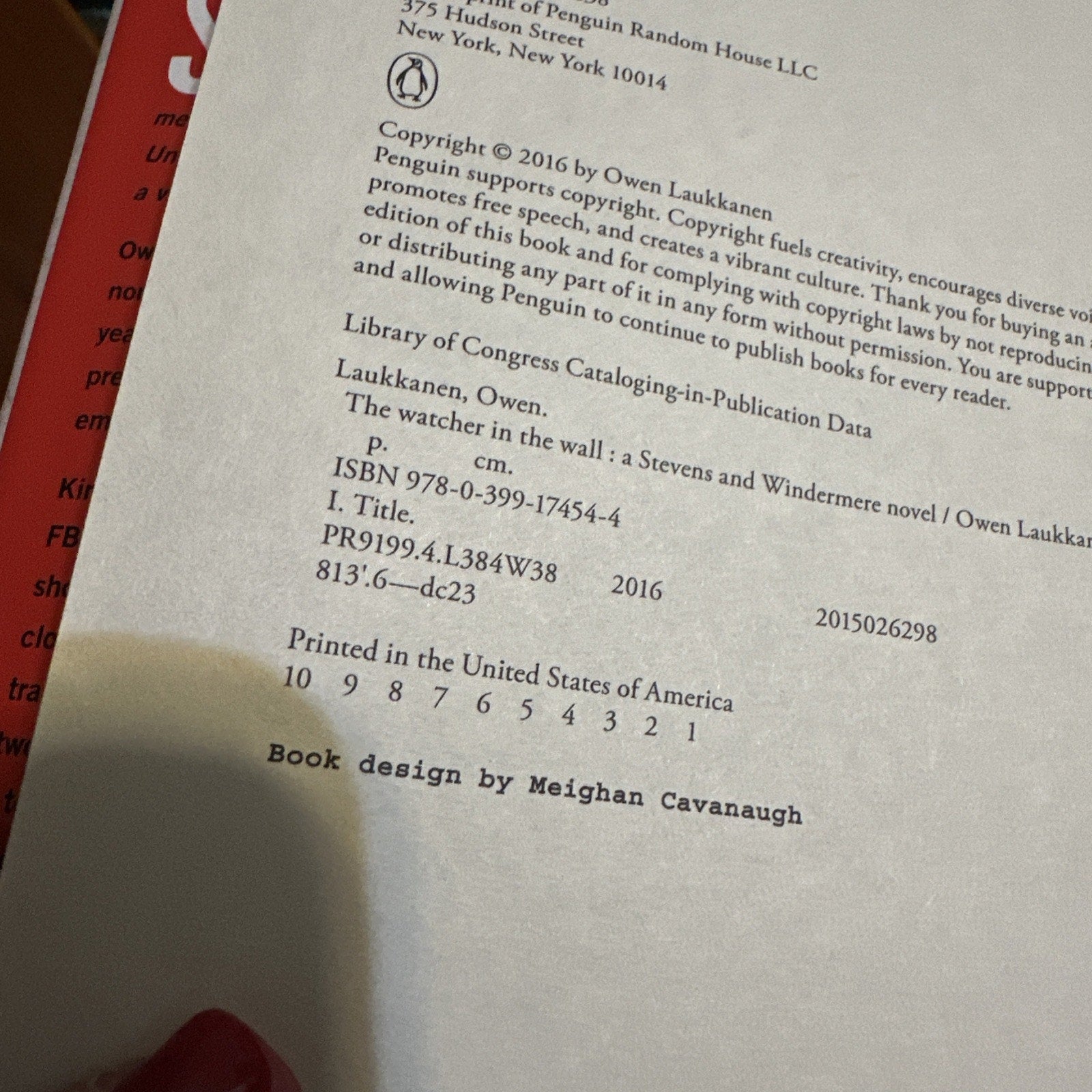 The product is a novel titled "Watcher in the Wall" by Owen Laukkanen, part of the "A Stevens and Windermere Novel Ser." series. Published by Penguin Publishing Group in 2016, this thriller/crime fiction book spans 368 pages in English. With an illustrated cover and weighing 20.2 ounces, it comes in a hardcover format measuring 9.3 inches in length, 6.2 inches in width, and 1.2 inches in height. The novel falls under genres like Thrillers/Crime, Thrillers/General, and Thrillers/Suspense.