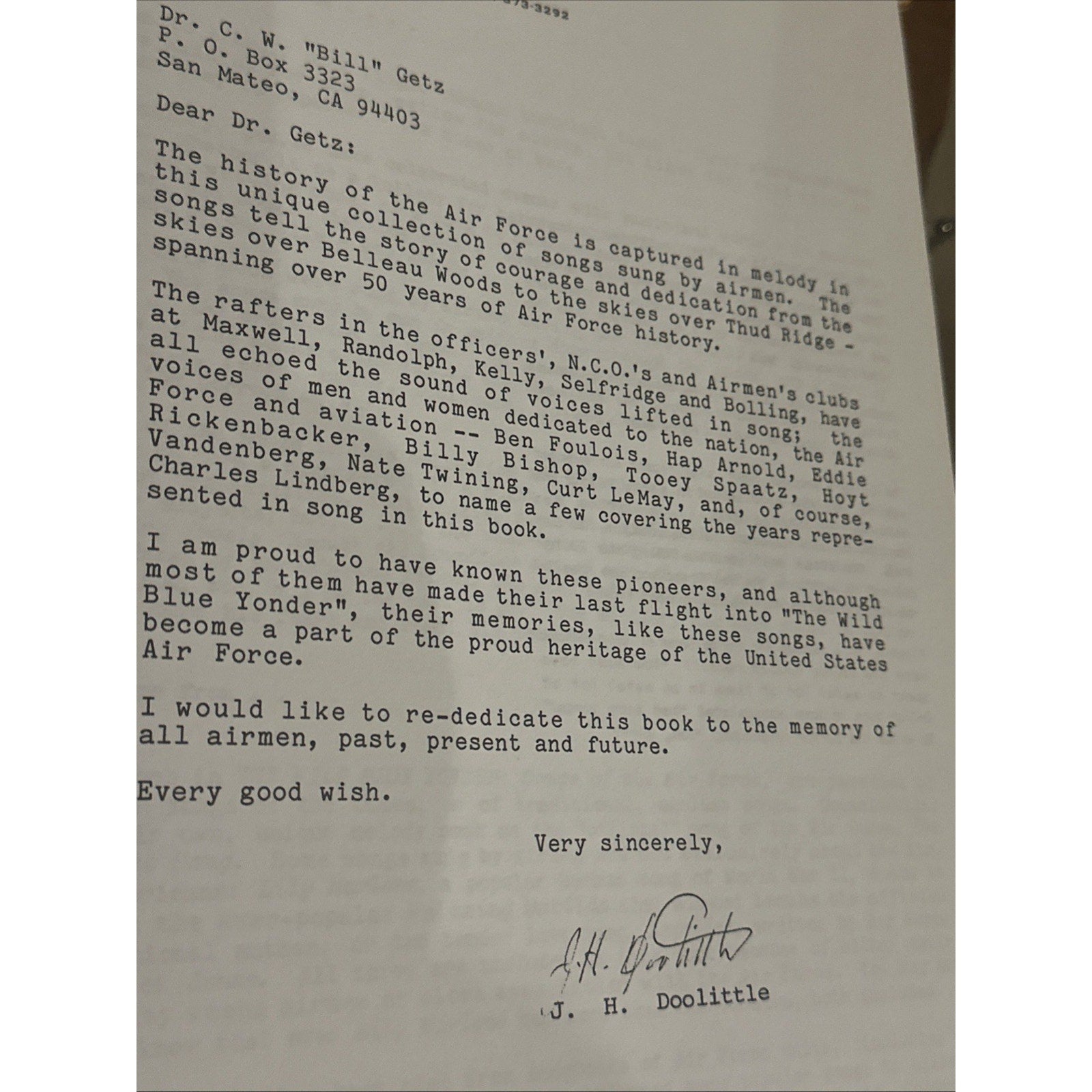 The Wild Blue Yonder Songs Of The Air Force Signed C.W. Bill Getz & Media info.