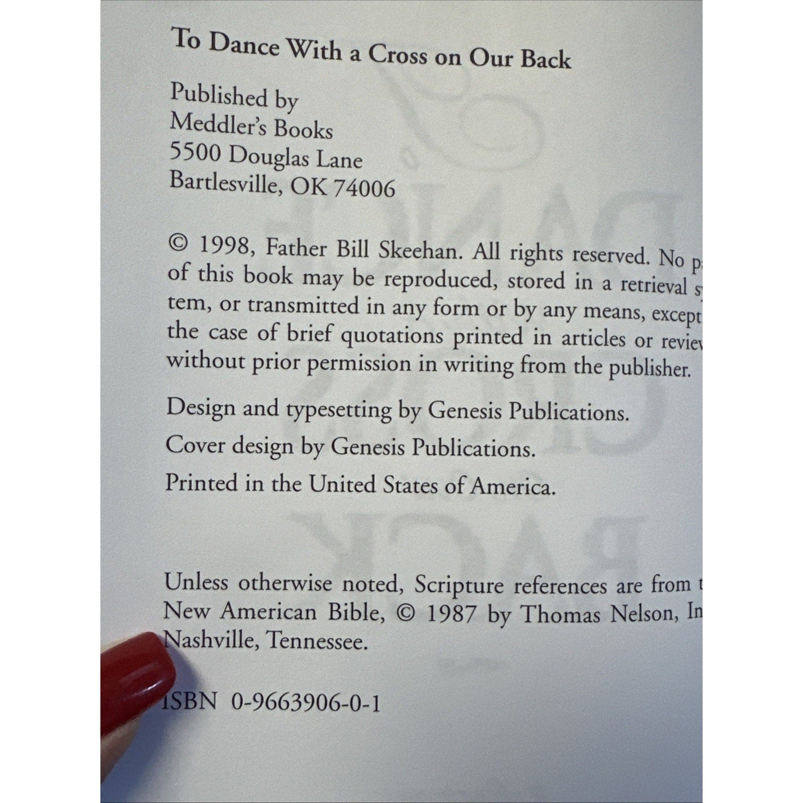 This hardback book, "To Dance with a Cross on Our Back: Reflections on the Word Made Flesh," is a collection of meditations by Bill Sheehan. Published by Meddlers Books in 1998, the book has 272 pages and measures 8.2 inches in length and 5.2 inches in width. The book is in English and is illustrated. The genre of the book is religion, and the topic is meditations.