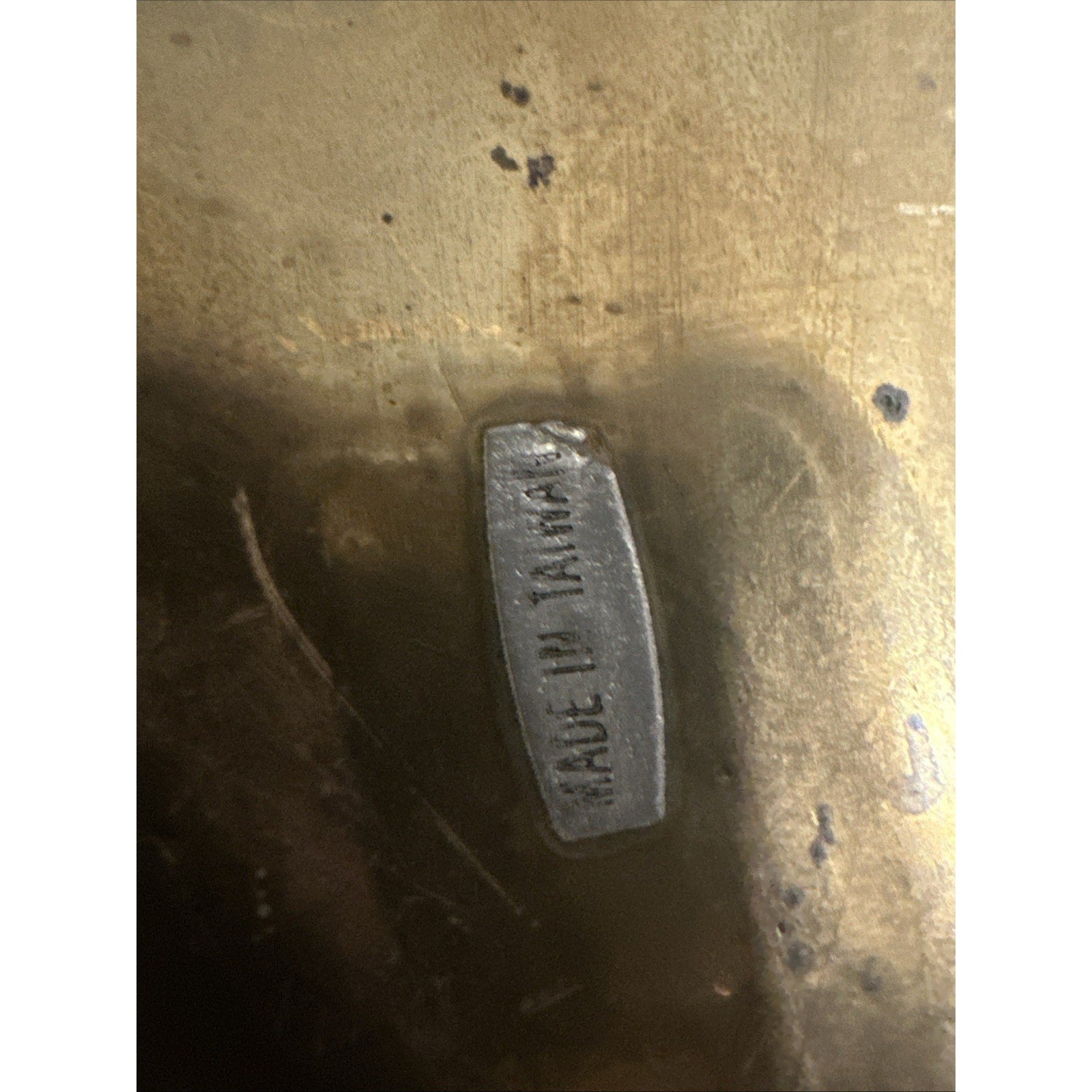 These vintage 1970s brass dolphin on wave bookends are a charming addition to any beachy or coastal decor. The medium-sized bookends feature a nautical theme with a gold color and antique brass finish, adding a touch of nostalgia to your space. The 3D effect of the dolphin and wave design gives them a unique and eye-catching quality, perfect for displaying on your bookshelf or as a doorstop. These original bookends from the late 20th century are a must-have for collectors of nautical-themed decor.