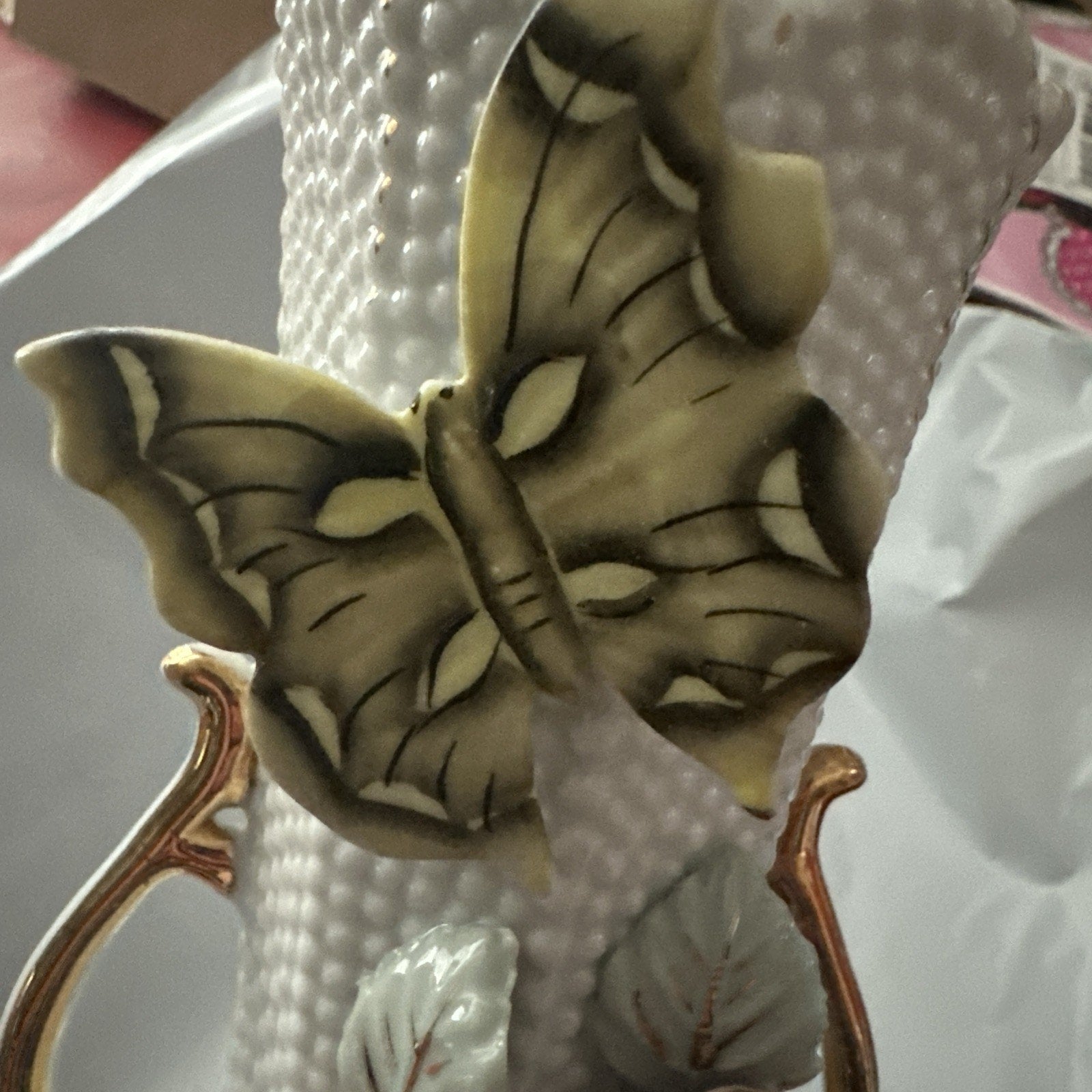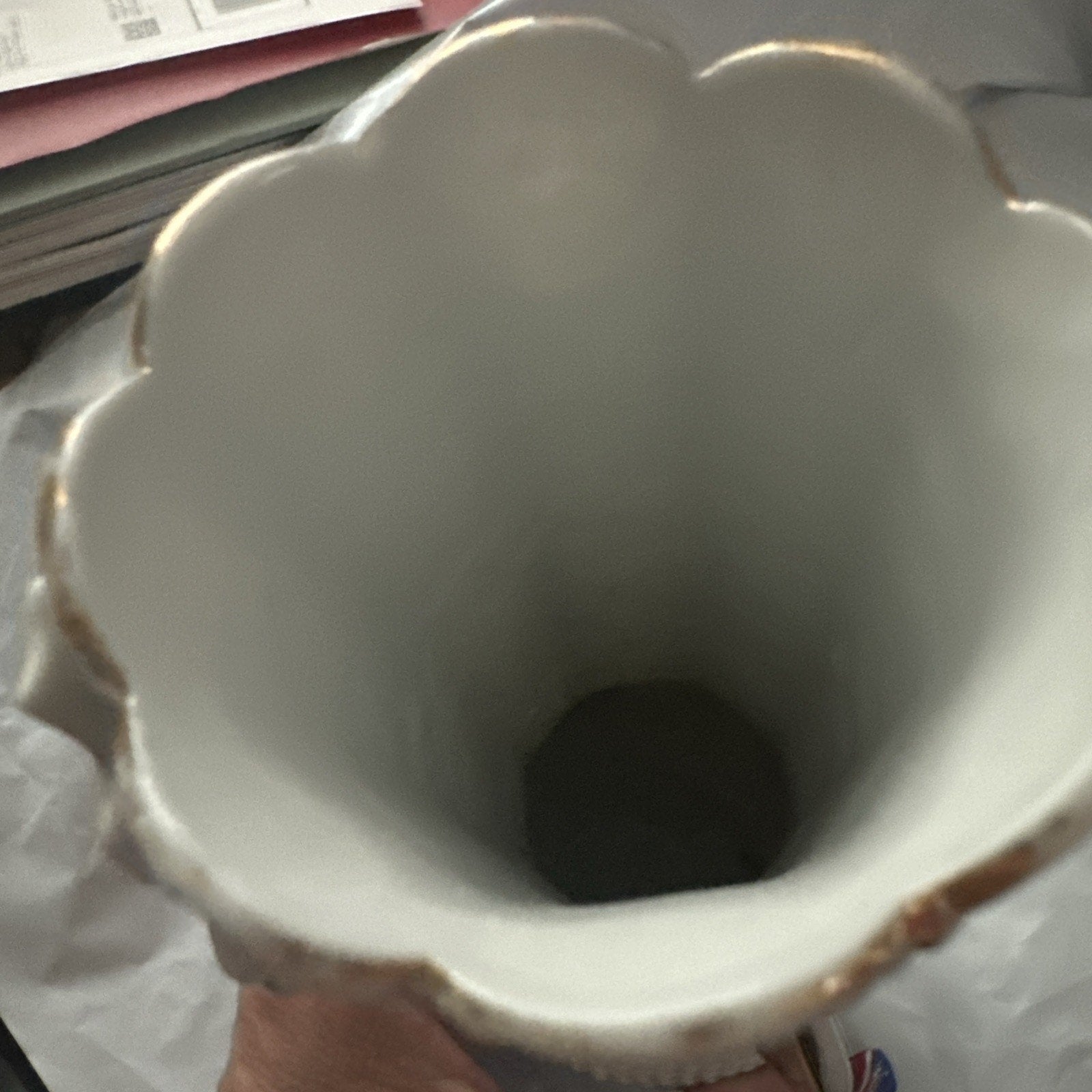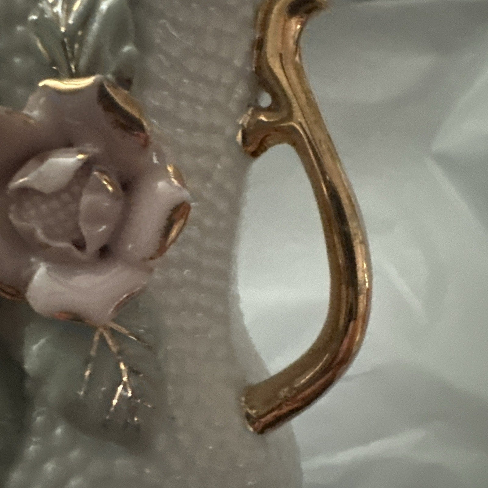 Vintage Double Handled Hobnail Porcelain Bud Vase W/ Gold Trim & Applied Flowers