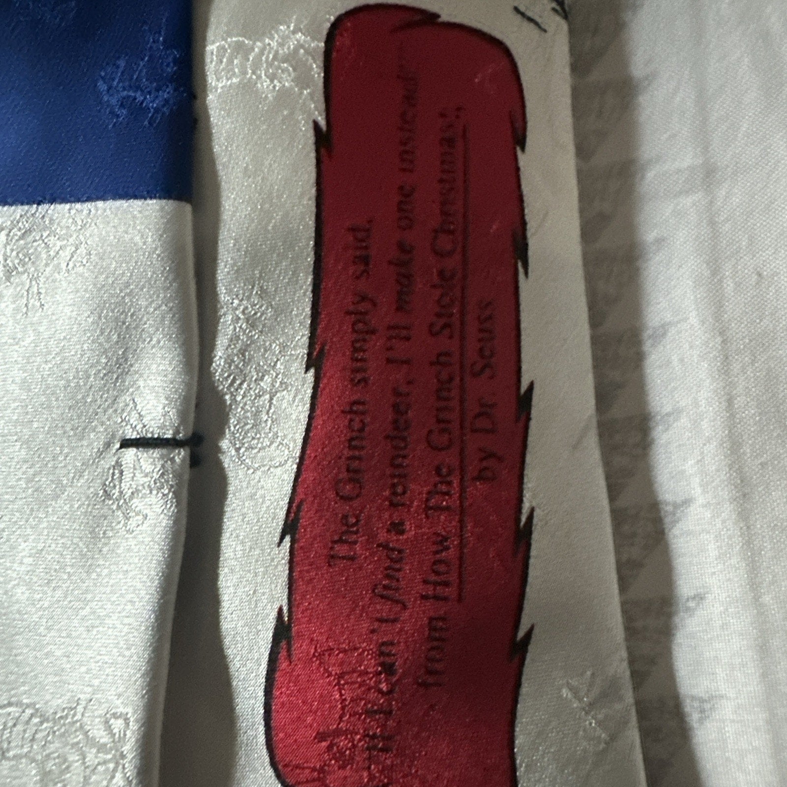 Whether you're looking to add some character to your outfit or want to make a statement with your tie choice, this vintage piece is sure to impress. Handmade in Korea, this tie is a must-have for any fan of Dr. Seuss and the Grinch. Personalize your look with this unique accessory and make your next holiday event one to remember.