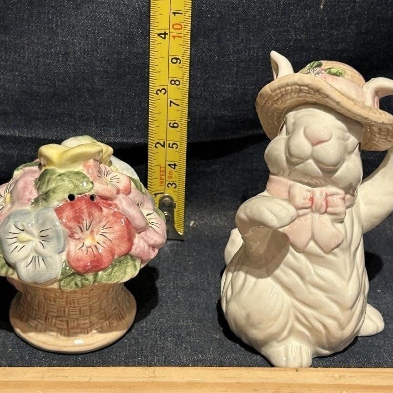 Vintage Fitz & Floyd Rabbit & Flower Salt & Pepper Set