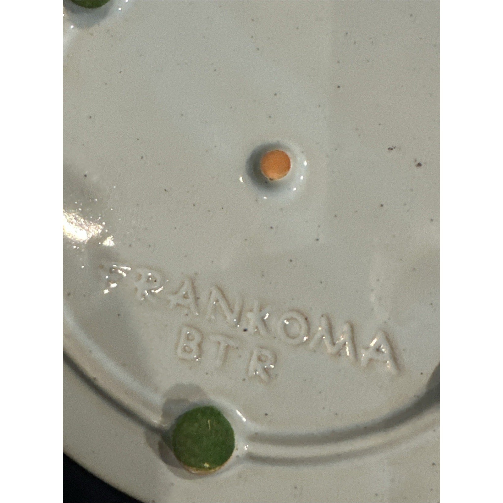 Add a touch of vintage charm to your kitchen with this beautiful Frankoma pottery trivet. The beige clay and ceramic material make for a durable and long-lasting finish, while the round shape and butterfly flower pattern add a whimsical touch. This hot plate is perfect for protecting your surfaces from heat damage, and the impressed backstamp ensures authenticity.
