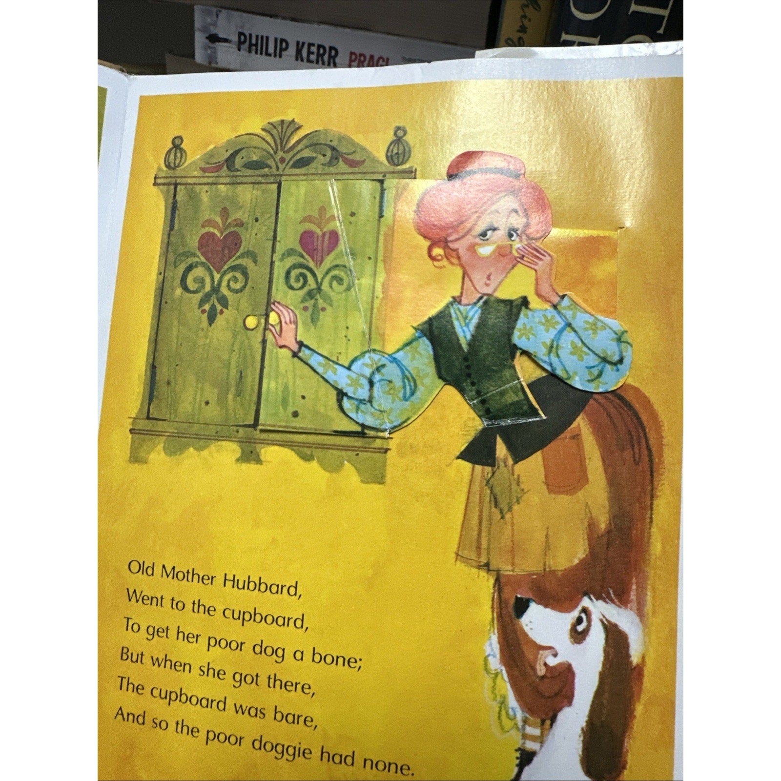 This vintage Hallmark children's book features favorite nursery rhymes from Mother Goose. The hardcover book includes pop-up pictures illustrated by Pat Paris and is an original copy from 1970. The book is in English and belongs to the Nursery Books topic. It also has a dust jacket and is a rare find. The book was printed in Singapore and is part of the Character Family of Mother Goose.
