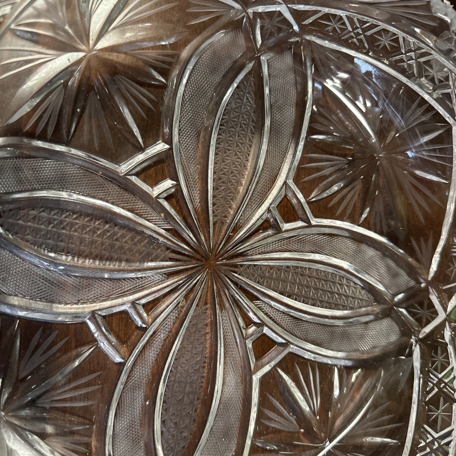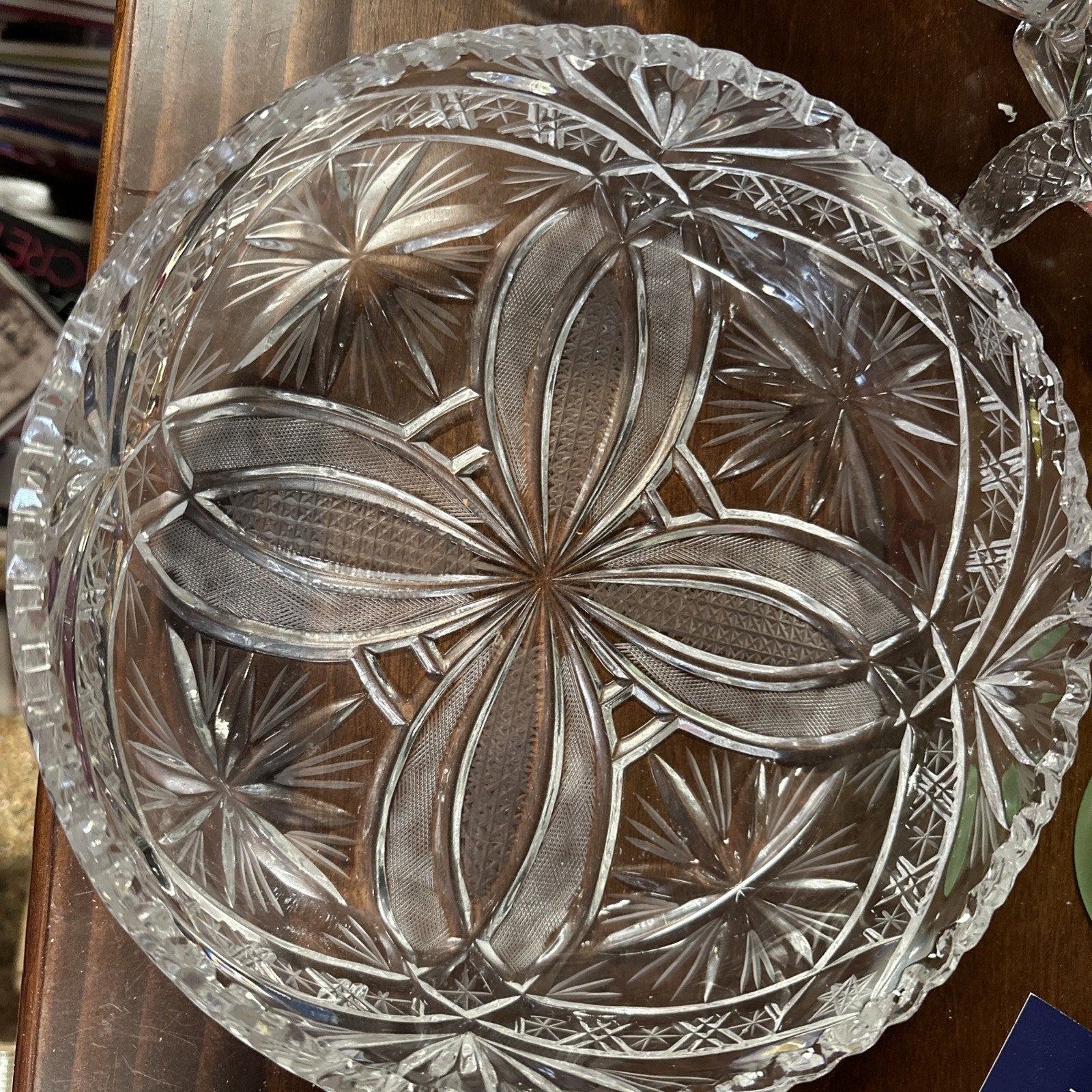 Vintage IrenA Hand Cut Lead Crystal Fan Pinwheel 9.25” Bowl Made In Poland