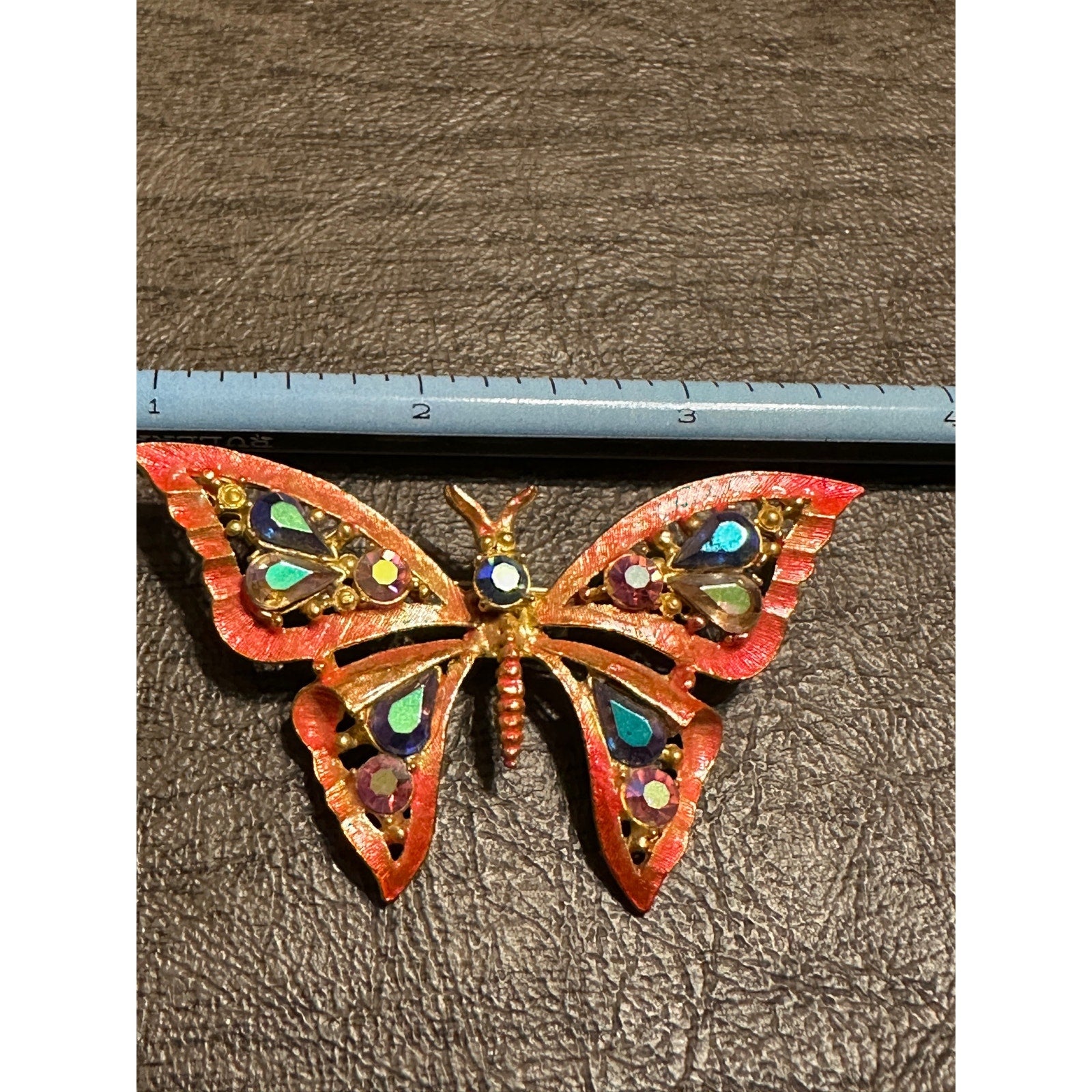 Vintage Metallic Gold Tone Butterfly with Aurora Borealis Rhinestones Brooch Pin