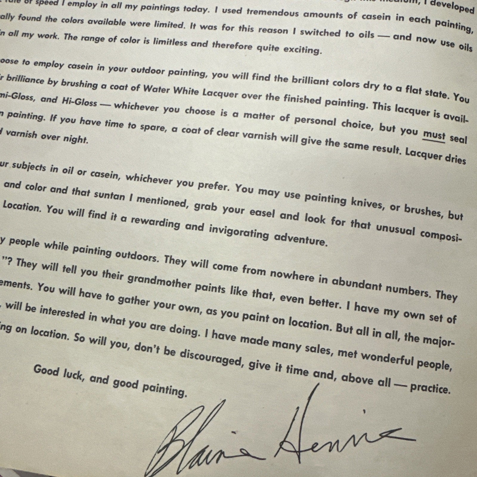 The product is a vintage painting on location by Blaine Henrie, featuring a landscape and nature theme. This oil painting technique is demonstrated in the United States by Walter T. Foster, known for their instructional books and media in the art supplies category. With a focus on capturing the beauty of landscapes and nature, this vintage painting captures the essence of outdoor beauty through the use of oil paint. The painting showcases the unique technique and style of Blaine Henrie while providing a glimpse into the art world of the past.