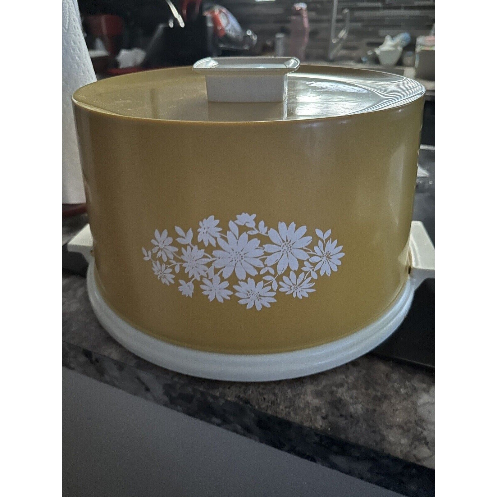 Vintage Plastic Cake Cover Carrier Harvest Yellow locking Lid with Floral Design