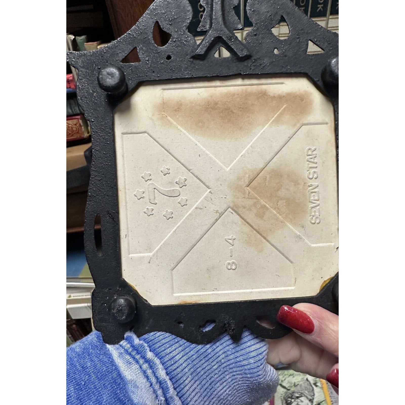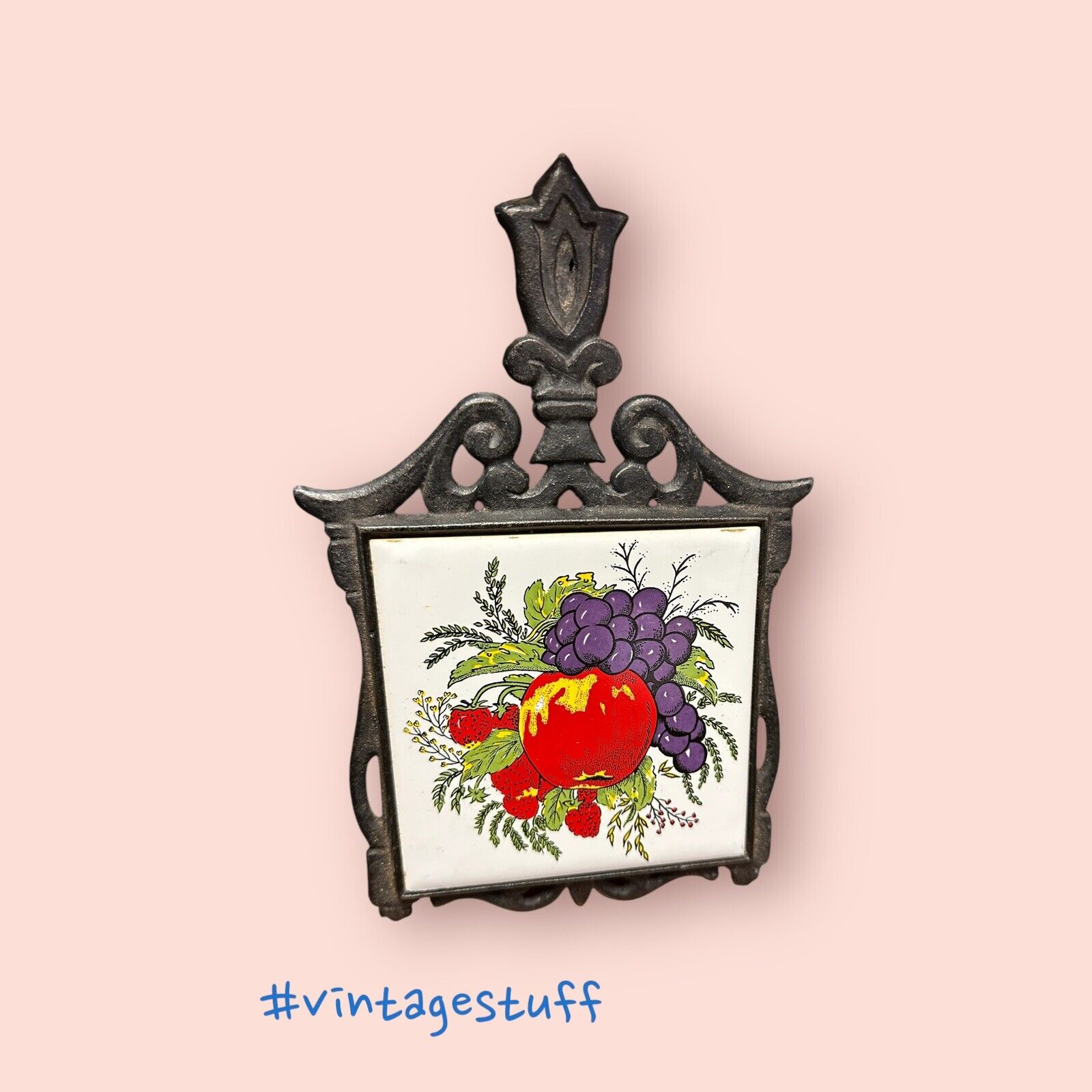 Vintage Seven Star Cast Iron Footed Tile Trivet Apple Grapes Strawberry Design