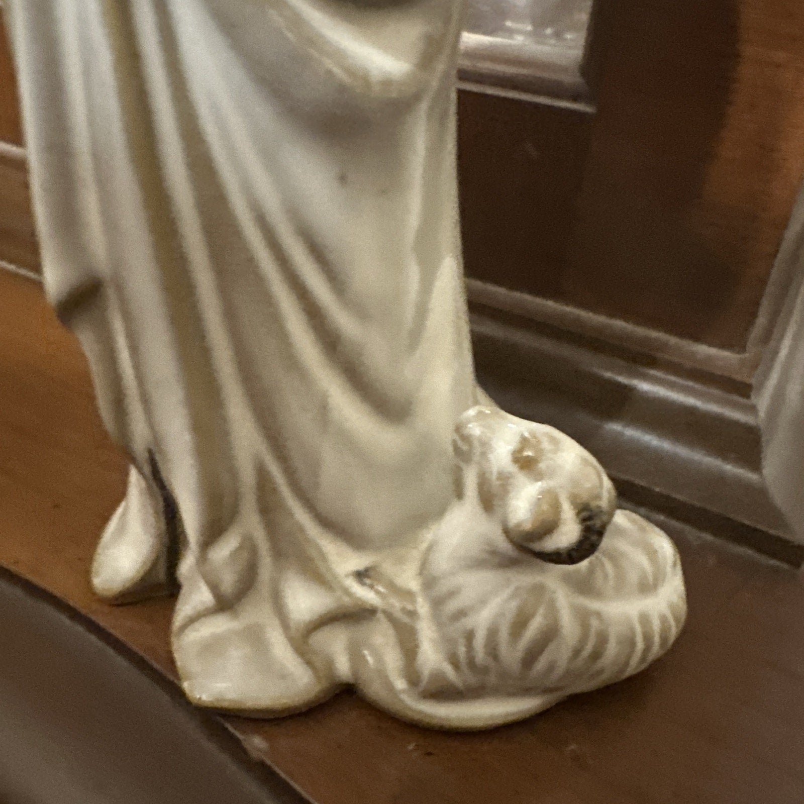 This vintage Su Wu Herd Sheep figurine is a unique and charming piece that depicts a shepherd tending to his sheep. Made from porcelain or pottery, this antique figurine embodies intricate craftsmanship and cultural significance. Originating from China, this vintage original piece captures the essence of traditional Chinese artistry and reflects the beauty of rural life. Ideal for collectors of Asian antiques, this figurine is a testament to the rich heritage and artistic tradition of Chinese culture.