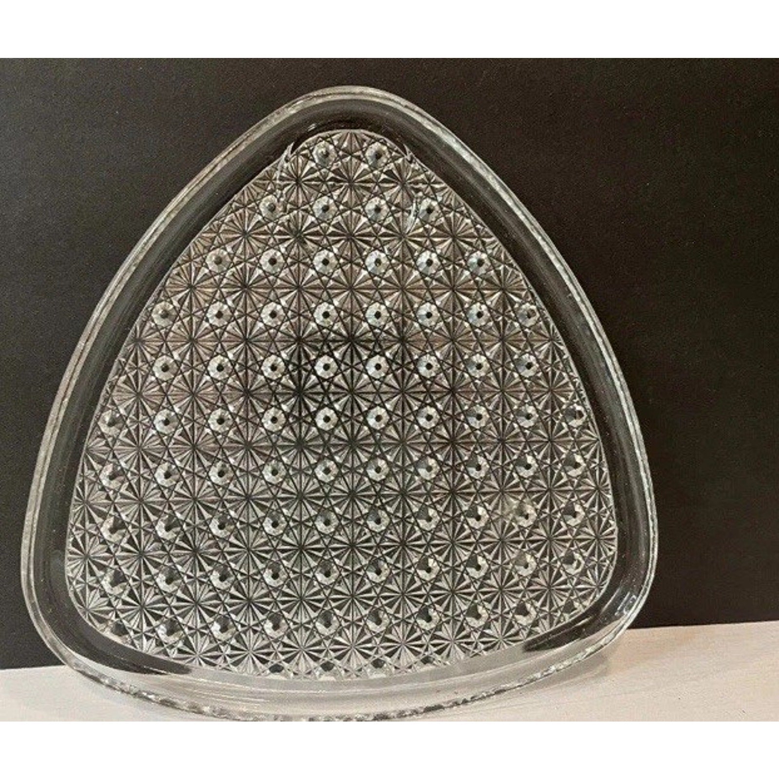 Vtg 1950s MCM Anchor Hocking Triangle Daisy & Button Glass Snack Plates 16 Plate