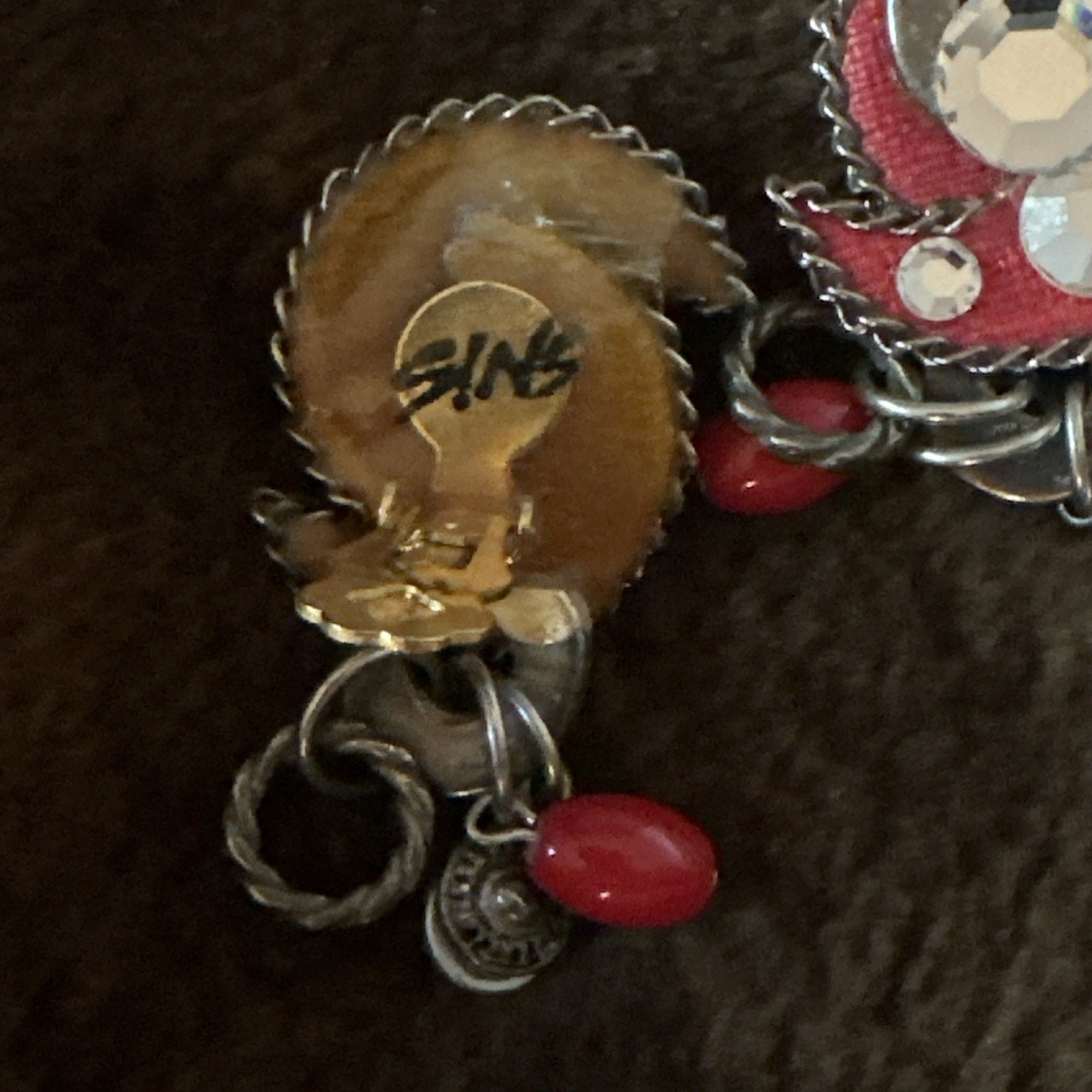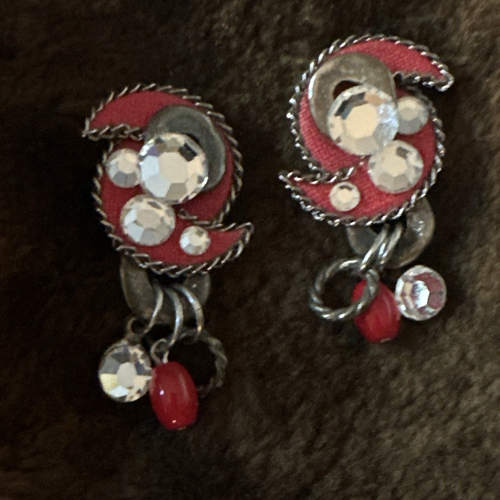 VTG 80'S SINS RUNWAY Large Red Boho ACRYLIC CRYSTALS DROP DANGLE CLIP EARRINGS