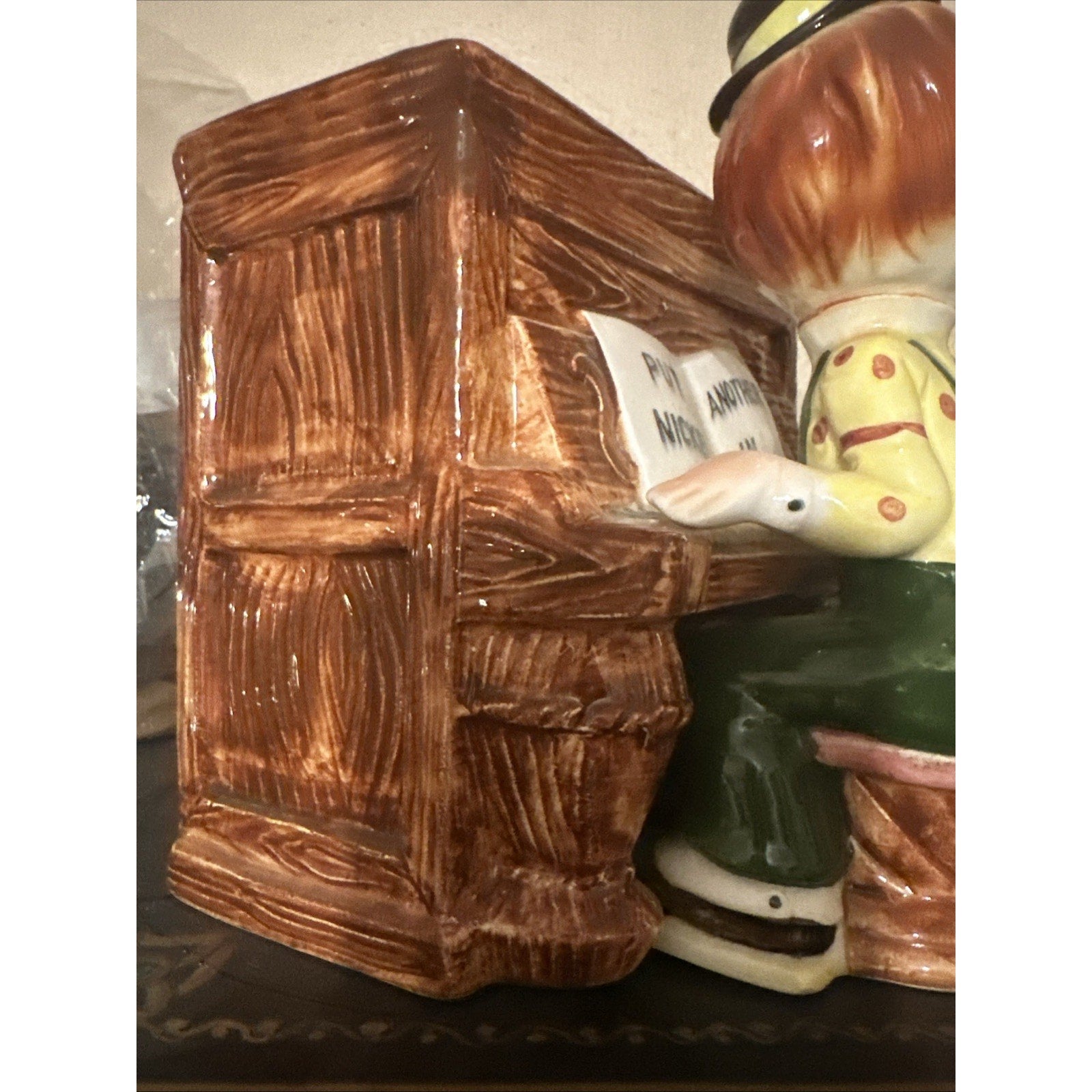 VTG Kitschy Piano Man Planter Vase #6378 Ceramic 1920s Bowler Hat Bar Japan MCM
