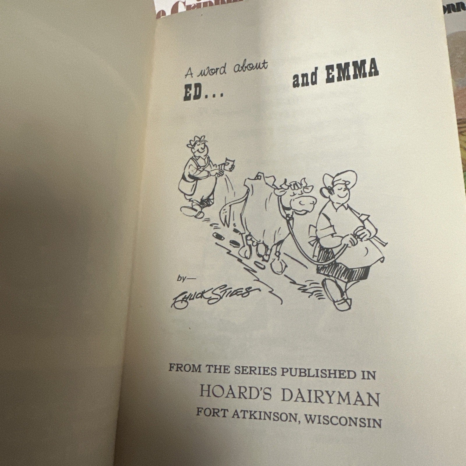 "A Word about Ed...and Emma" featuring cartoons from Hoard's Dairyman. Published by Rubidoux Printing Co, the book contains 64 pages of original English language cartoons related to the topic and subject of cartoons. It is a unique collectible item for those interested in antique books and cartoons.
